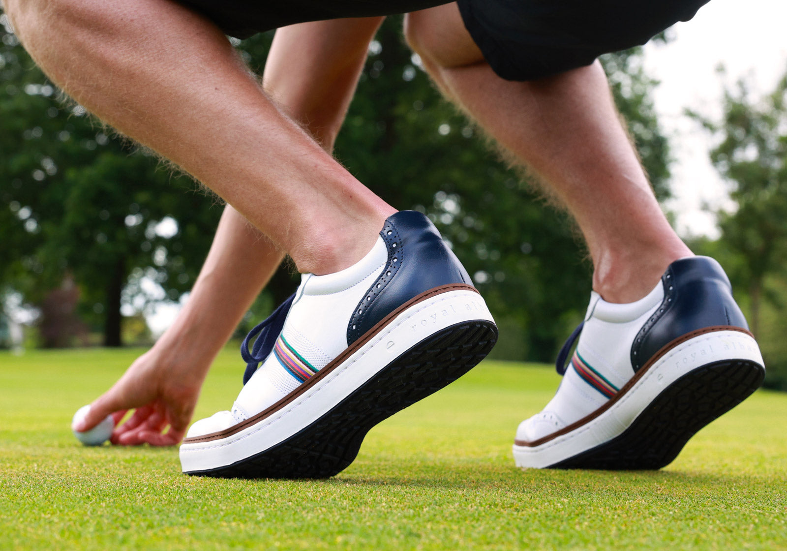Long before the match starts on the course, the match starts in the locker room. The Kingsman was inspired by the warm, luxurious tones of locker rooms in some of the most famous clubs around the world. The timeless brogue wingtip style is a nod to classic golf shoes from the past.