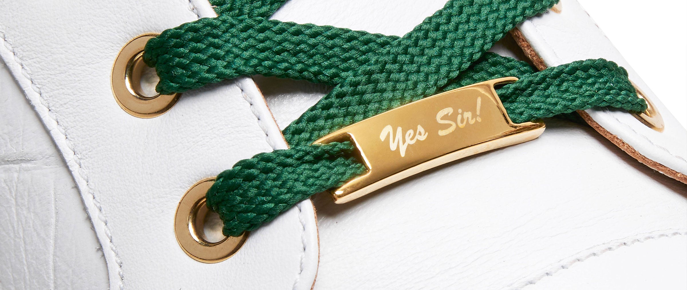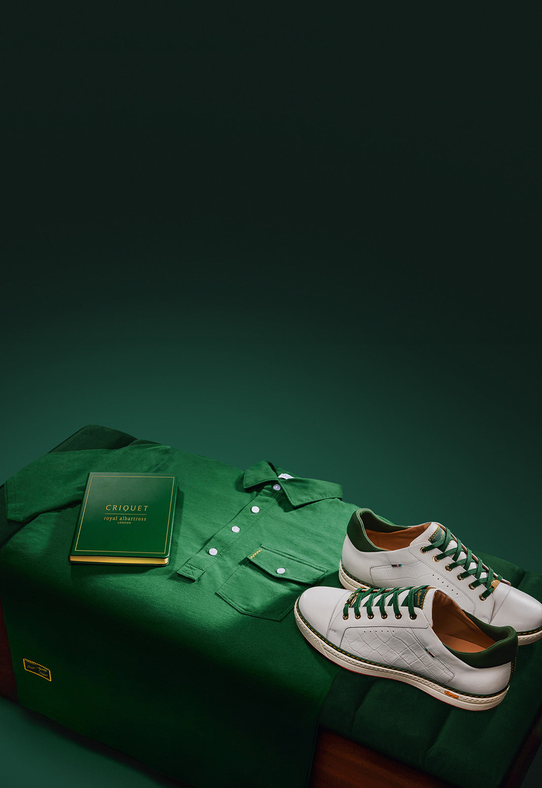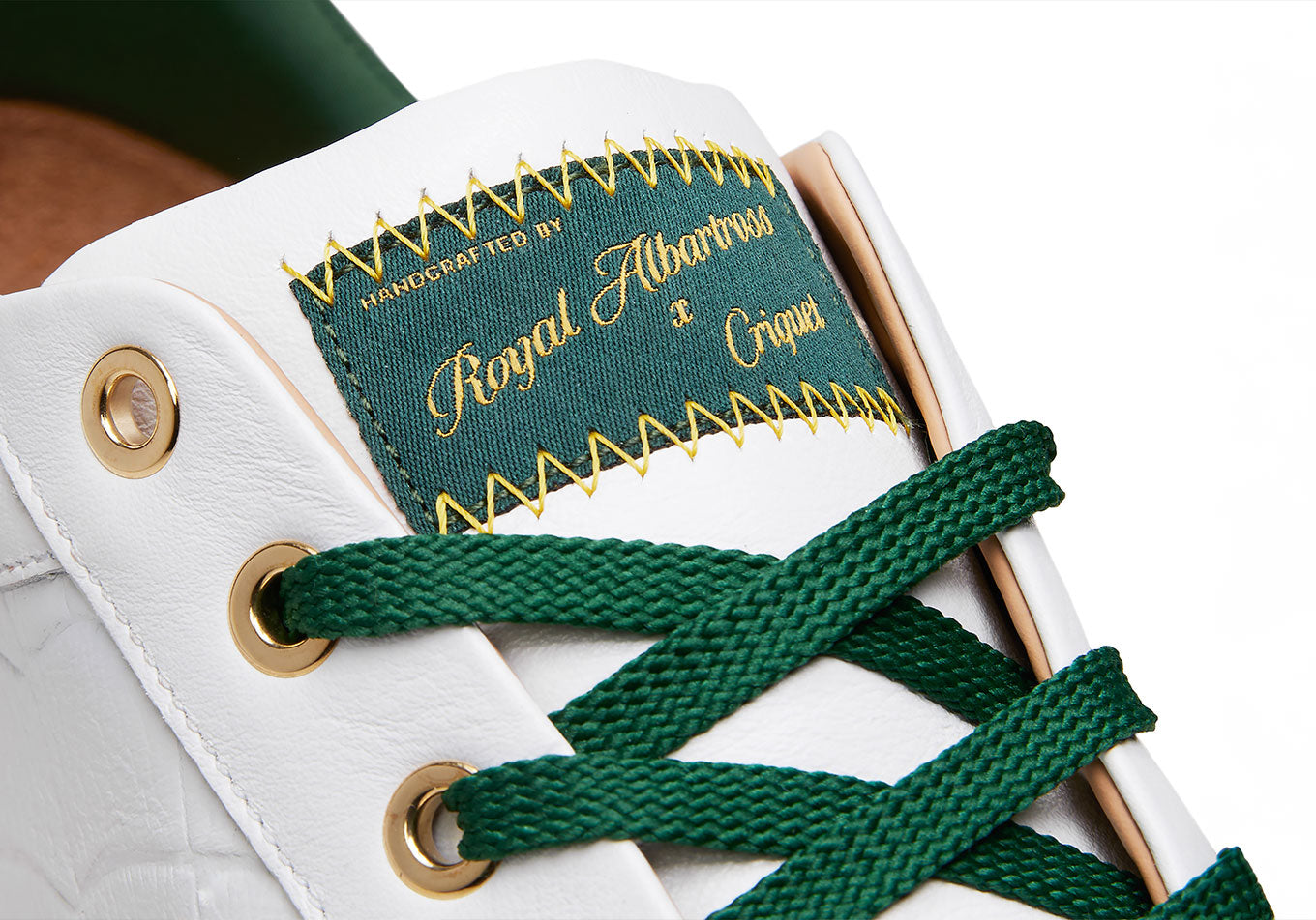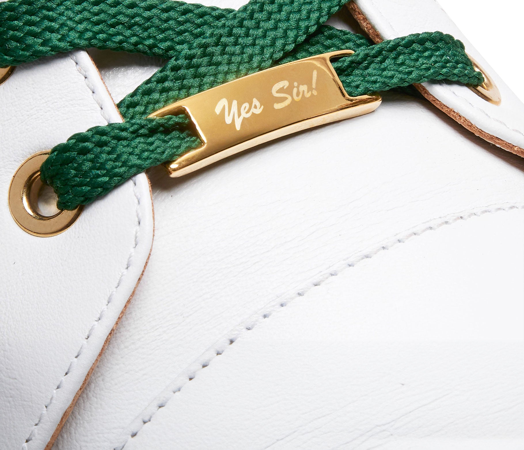 Our Iconic Bond golf shoe in white croc-print Italian Napa leather seemed the perfect canvas to introduce bold highlights in green, gold and yellow, inspired by a prestigious event and an extraordinary accomplishment in the world of golf.