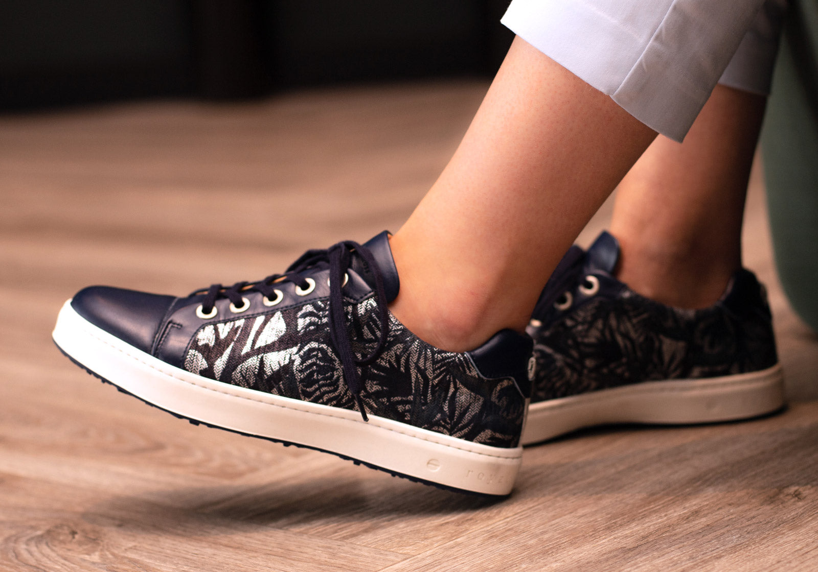 Who says life, or golf, must be hard work? Our Creative Director and Founder, Alex Bartholomew, calls the Annabel ‘a dreamy island-escape of a shoe’, and she should know. Even the tropical print uppers, in Italian leather, will have you planning your next golfing vacation. Added ankle and instep padding centre comfort in a shoe ideal for travel or play.