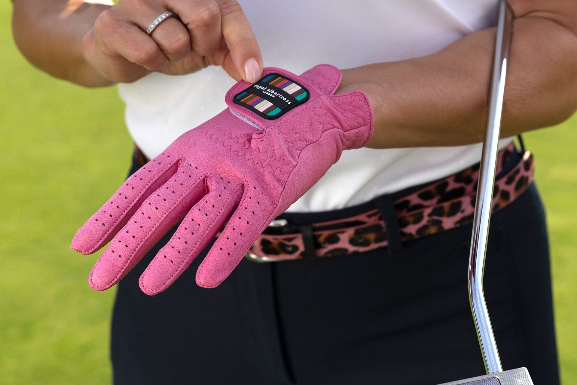 Pink Leather Faux Leopard Fur Luxury Golf Belt.