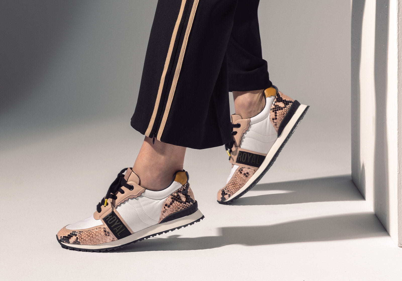 The Strider Luxe Nude Snake, the women’s hybrid golf shoe that delivers style and performance. Italian snake print leather uppers, the pink and tonal pattern with contrasting crisp white mesh and stylish accents give this sneaker a high-fashion look. Inspired by the men’s Strider Lite collection, the Strider Luxe offers lightweight performance and bold, individual styling. Our compression-molded midsole offers stability and comfort, whilst a breathable upper will regulate climate control for 18 holes and beyond.